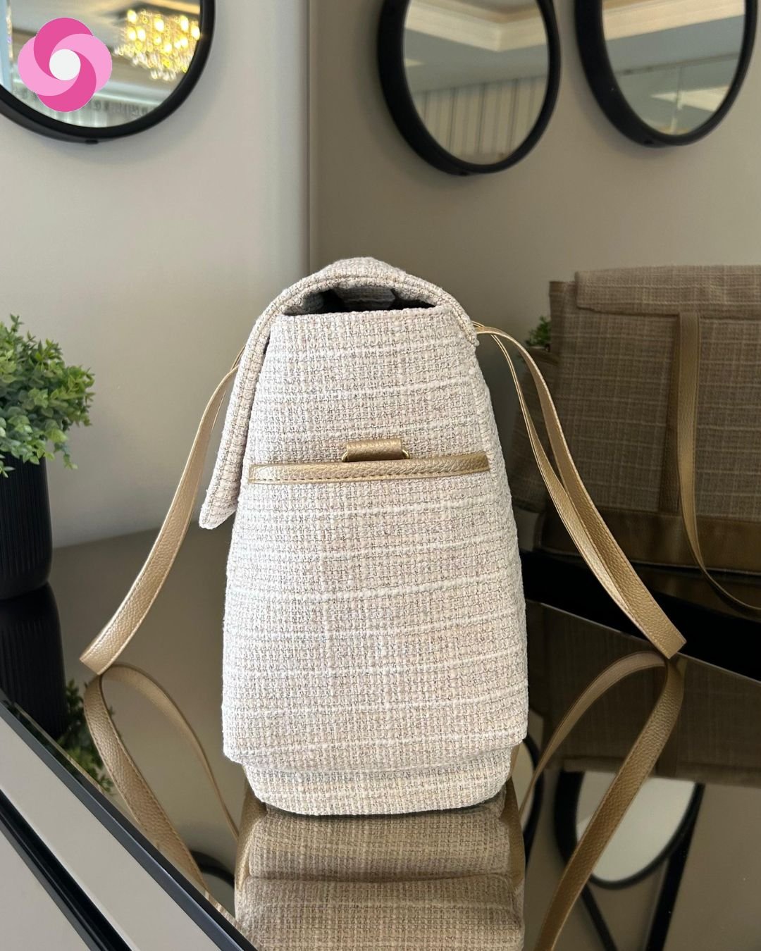 Essa é a bolsa Milano! Pensada especialmente para as mães, que mesmo na maternidade não querem sair do estilo e também aquelas que gostam de bolsas grandes (alô mamães de gêmeos)! Ela tem essa alça dupla, fechamento em aba com botões de imã por aproximação… É só encostar e ela fecha… Praticidade que fala né?!! Também acompanha alça transversal!