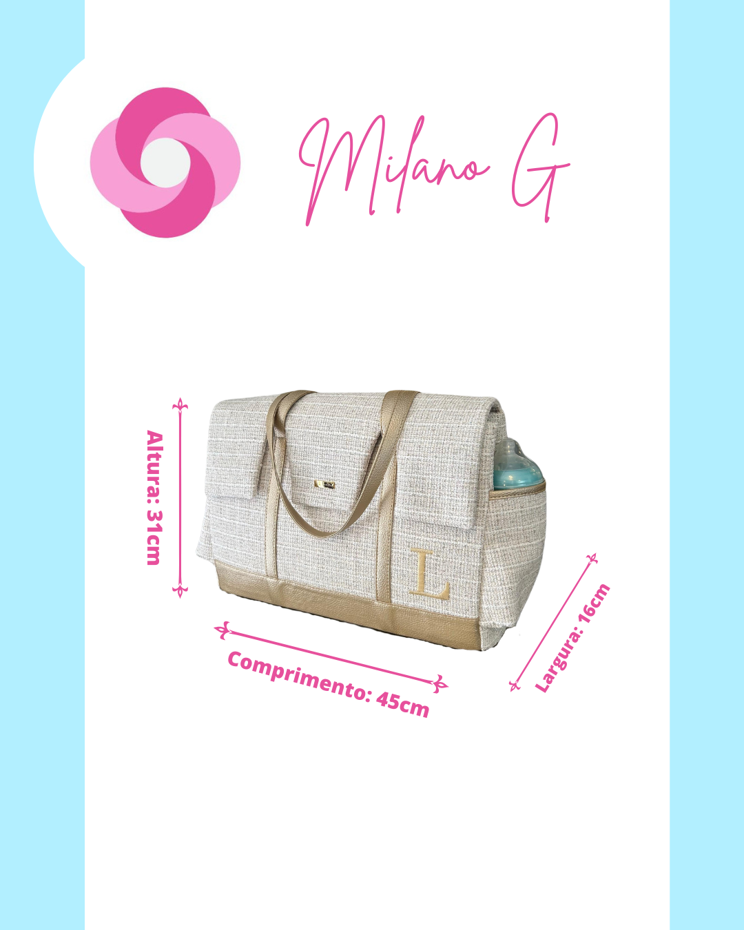 Medidas Milano G: 34cm altura x 48cm comprimento x 18cm largura