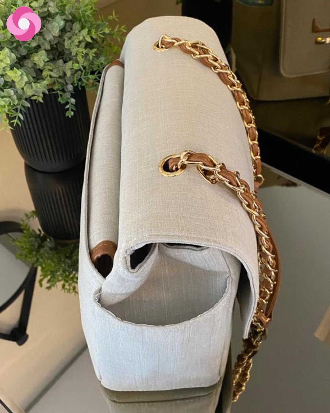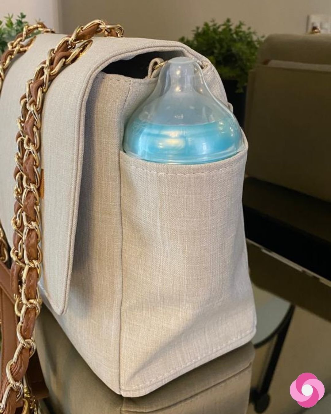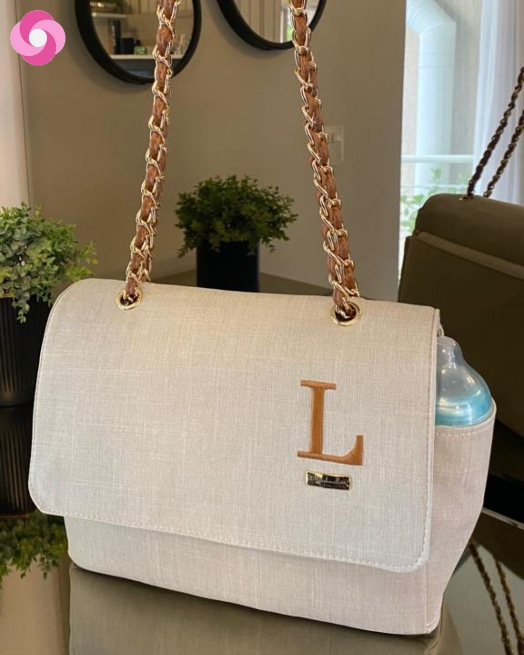 Essa é a bolsa Vegas! Pensada especialmente para as mães, que mesmo na maternidade não querem sair do estilo! Ela tem essa alça maravilhosa, de correntaria trançada, que traz um super luxo para os seus looks que pode ser usada tanto no ombro, quanto crossbody!