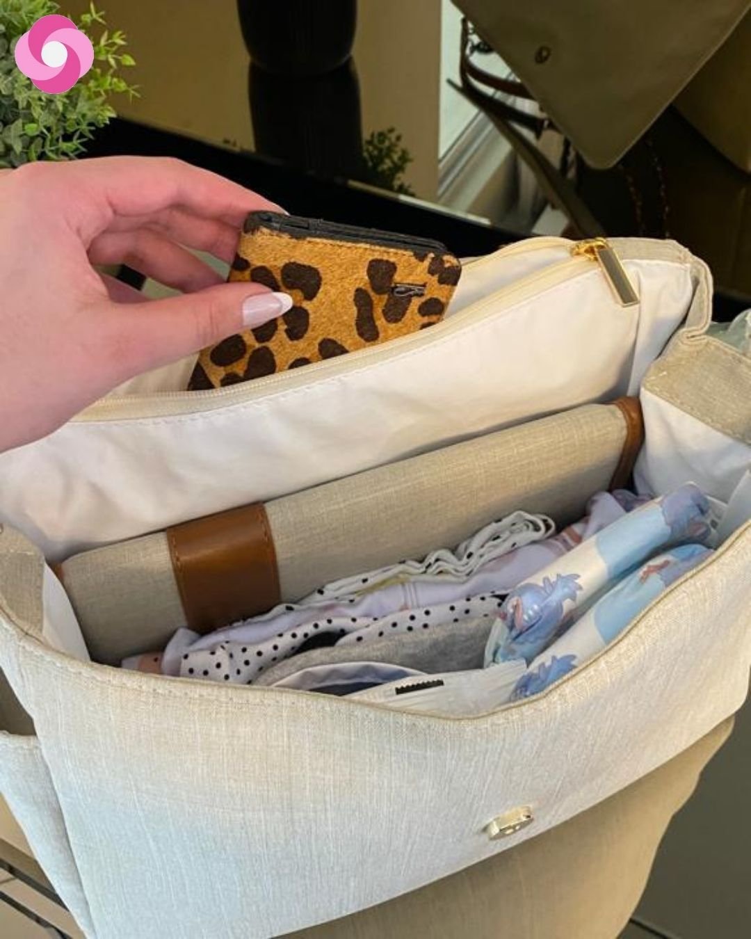 Já acompanha um trocador portátil de brinde do mesmo tecido da bolsa!