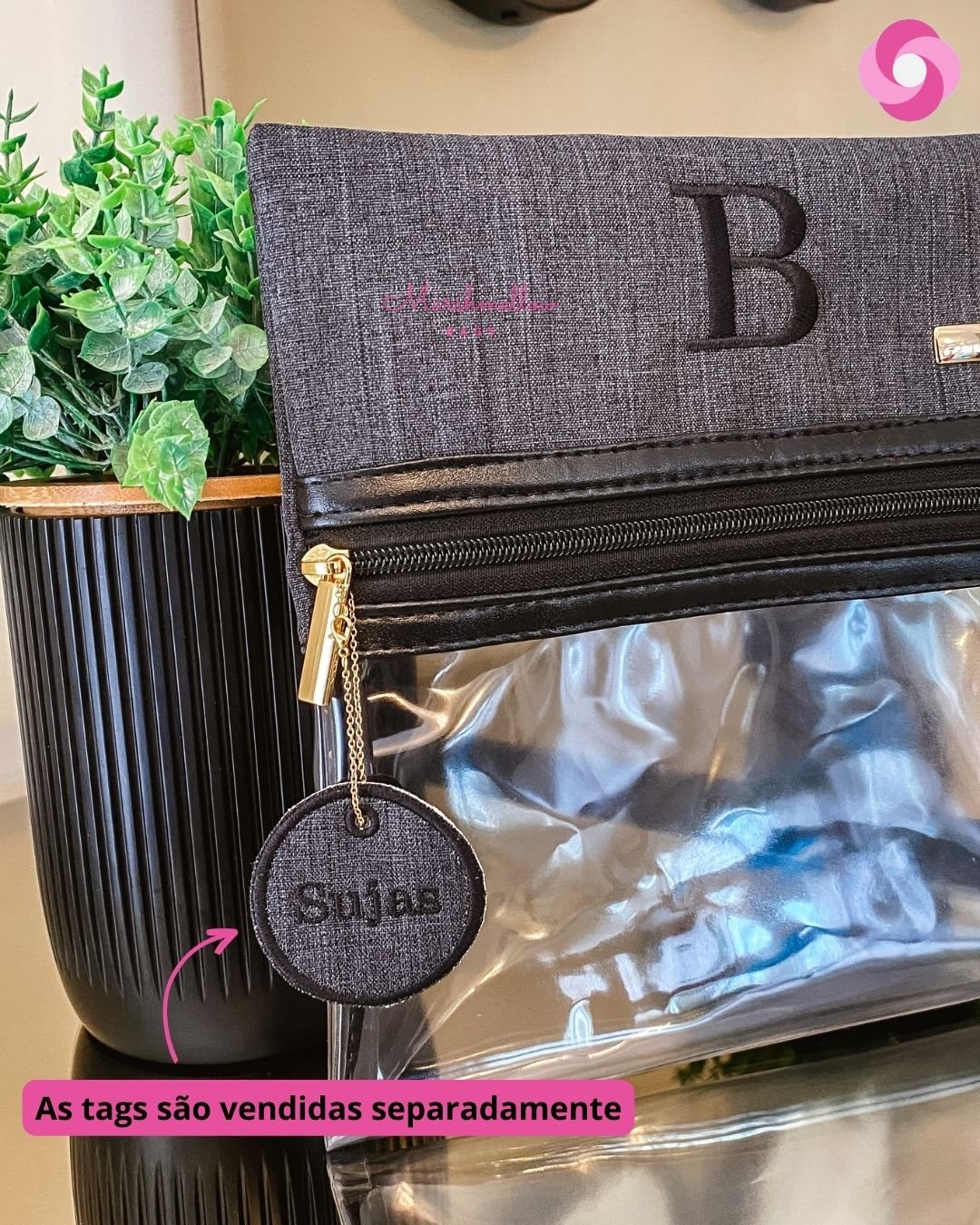 Kit com 3 Organizadores de Looks Mini – Linho preto + detalhes em sintético preto absoluto + bordado preto