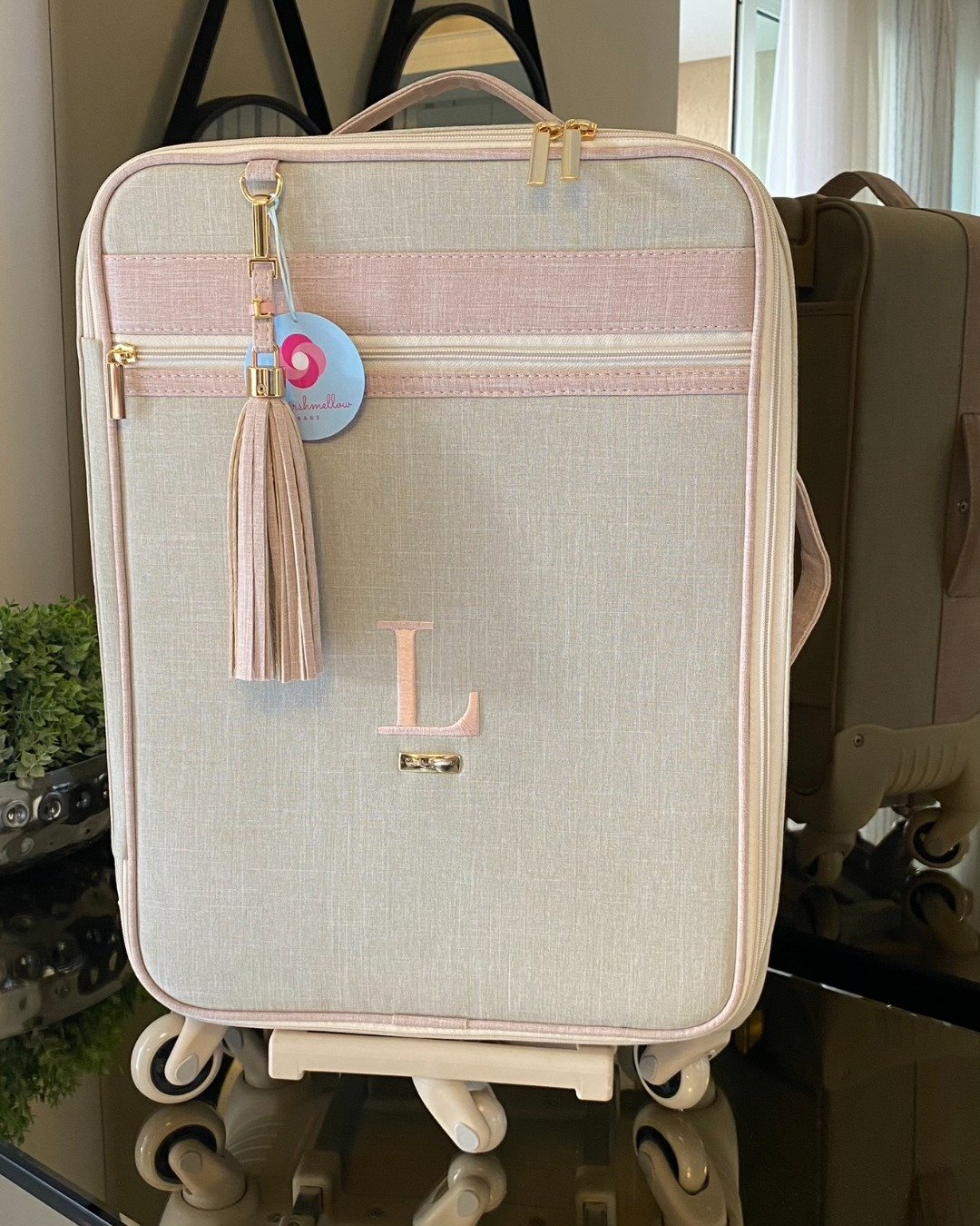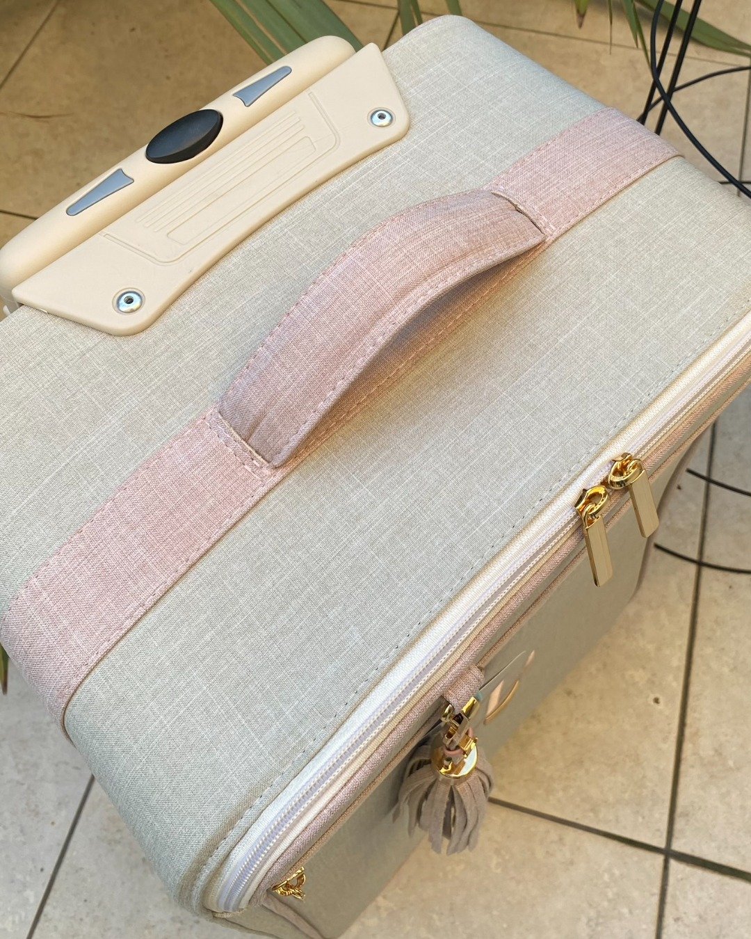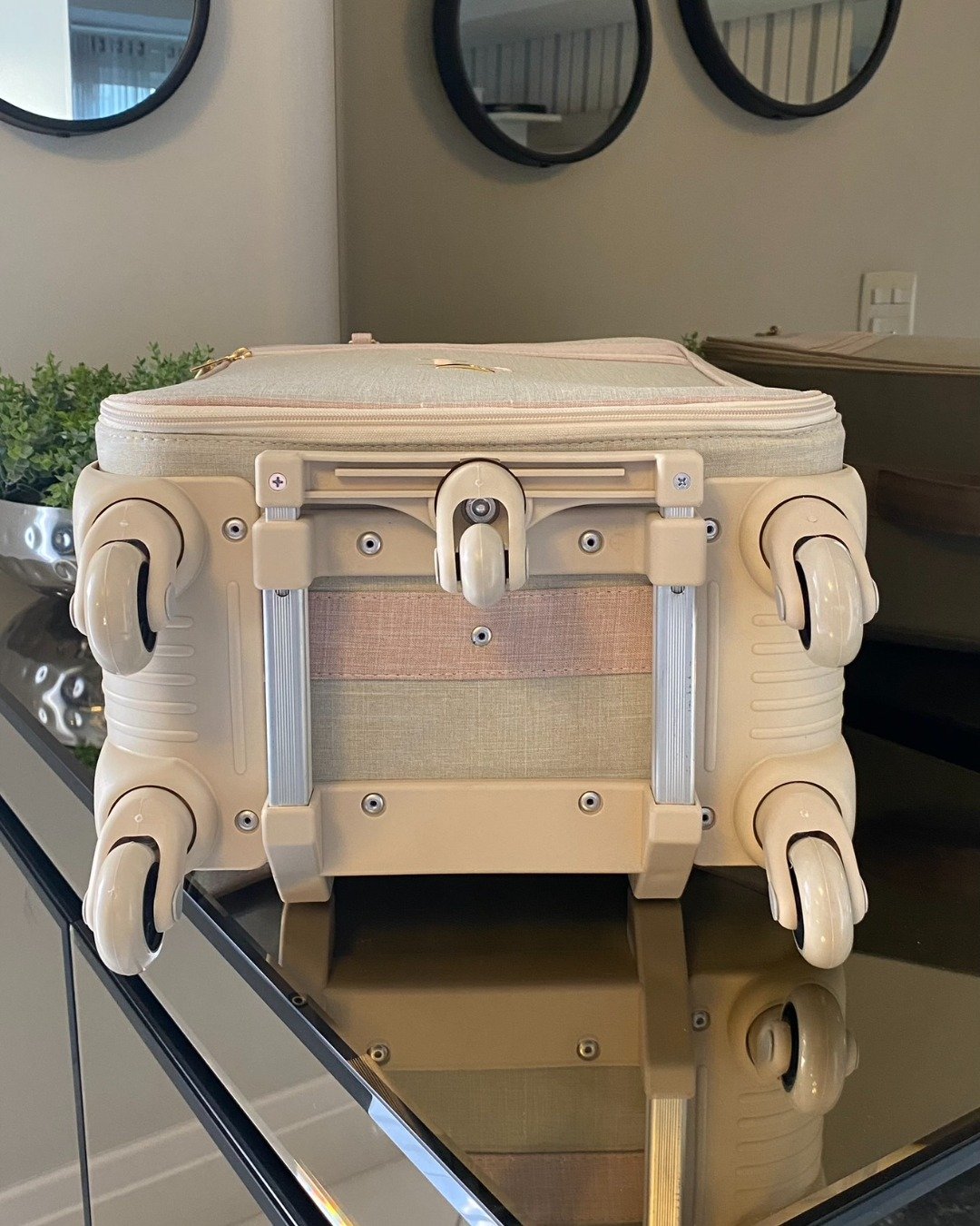 Mala de Rodinhas 360º de bordo – Linho bege cru com detalhes em linho rosê