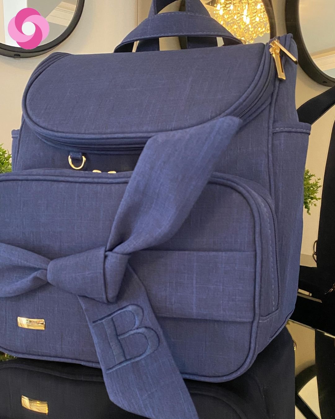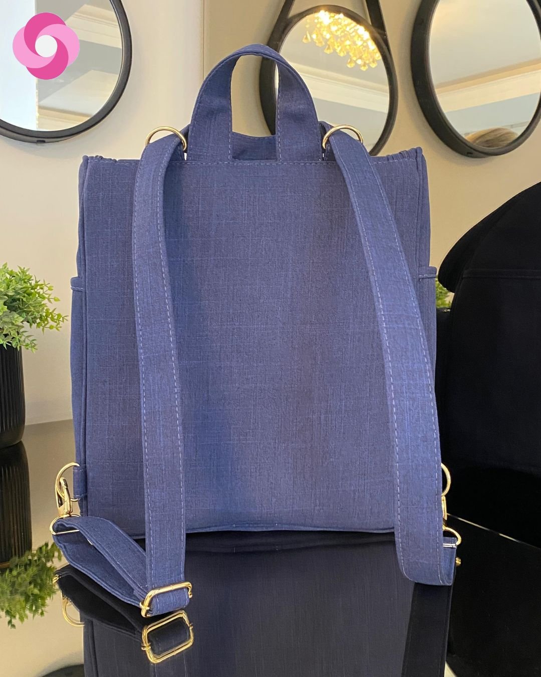 Mochila 2 em 1 tradicional – Linho azul marinho com bordado azul marinho