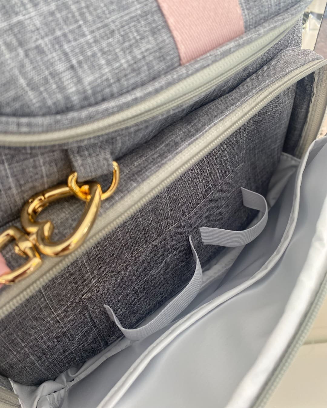 Já acompanha um trocador portátil de brinde do mesmo tecido da bolsa!