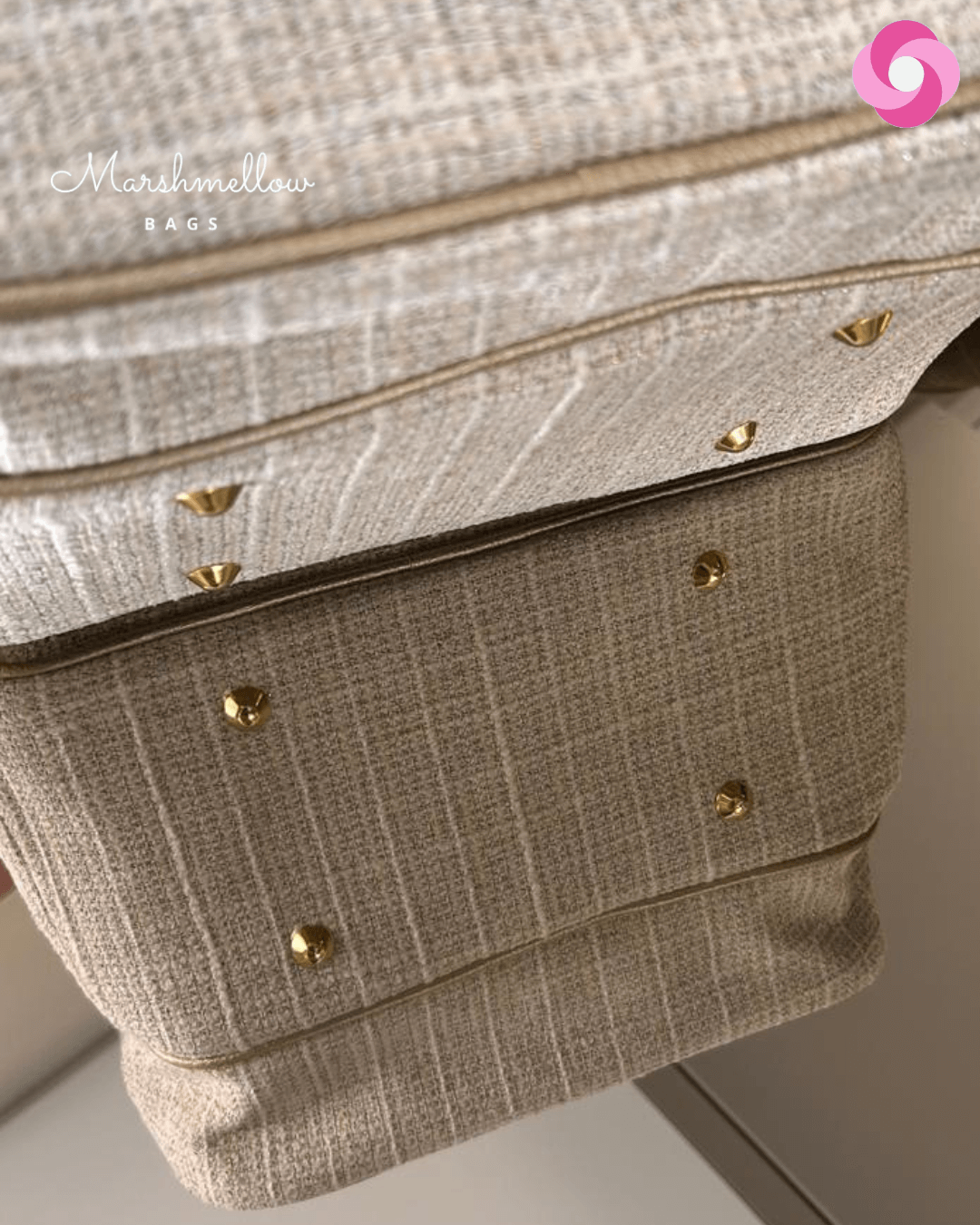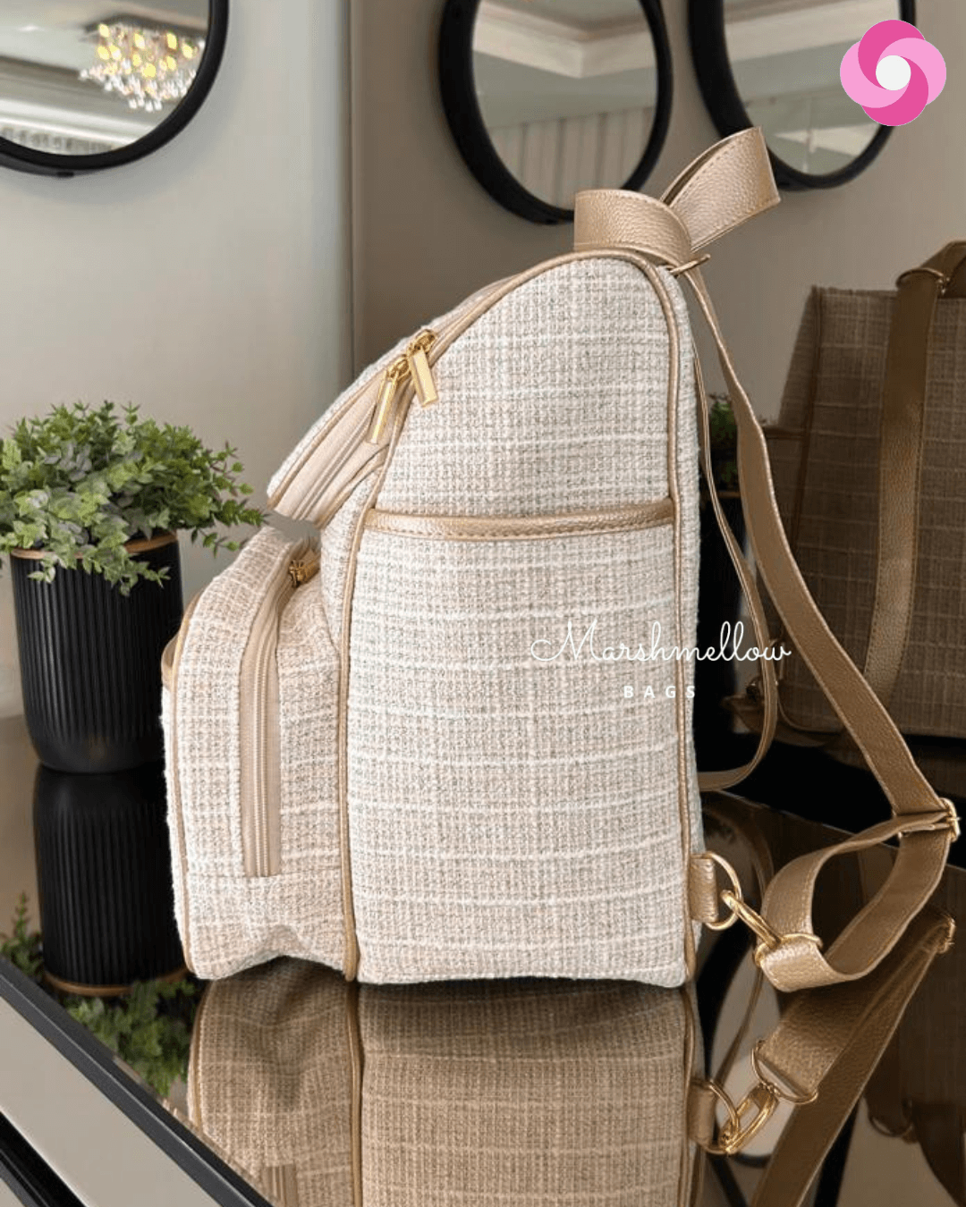 Mochila 2 em 1 tradicional – Tecido Tweed com detalhes em dourado